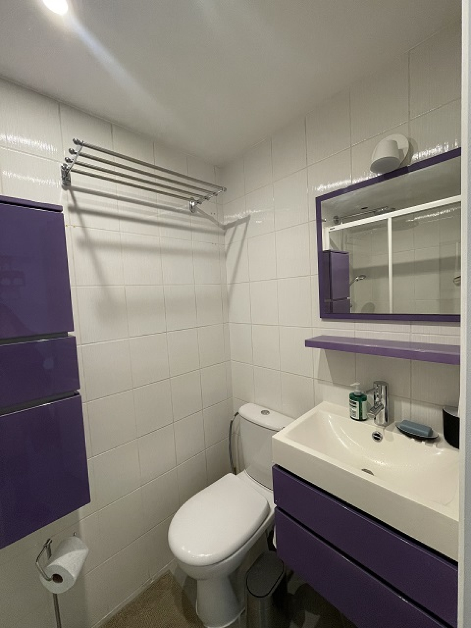 L'appartement se compose d'un séjour lumineux avec une cuisine ouverte entièrement équipée et d'une salle d'eau avec WC. A l'étage vous trouverez un espace nuit bien amenagé avec placard et rangements intégrés.