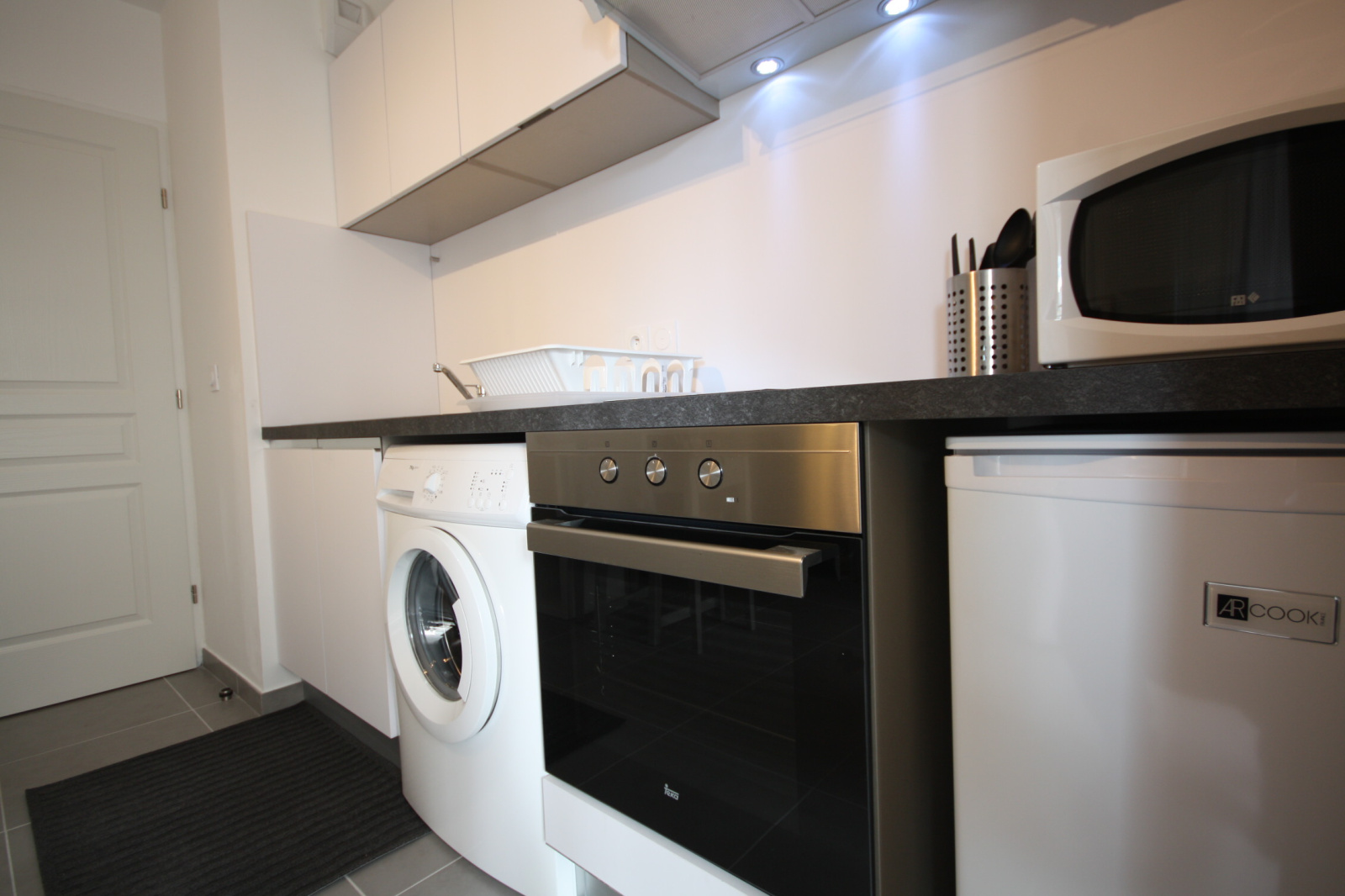 L'appartement est situé au premier étage d'une charmante copropriété avec ascenseur. Dès l'entrée, vous serez séduit par le séjour lumineux, avec une cuisine ouverte et entièrement équipée avec four, hotte et plaque de cuisson. Vous trouverez également une salle de bain spacieuse avec WC.